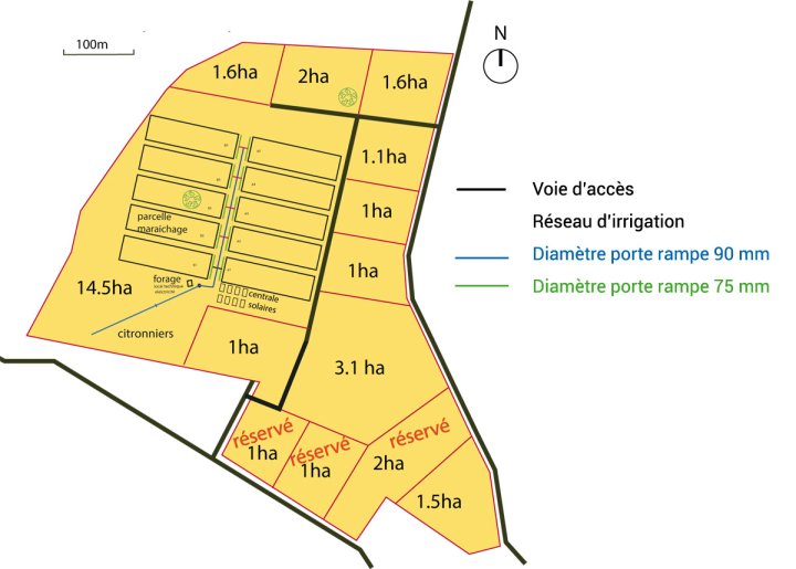 Le terrain représente aujourd’hui une trentaine d’hectares. Dix hectares sont actuellement exploités en agriculture biologique pour produire nos piments et nos intrants naturels. Nous disposons d’un forage et d’une centrale solaire en appoint au réseau Senelec.